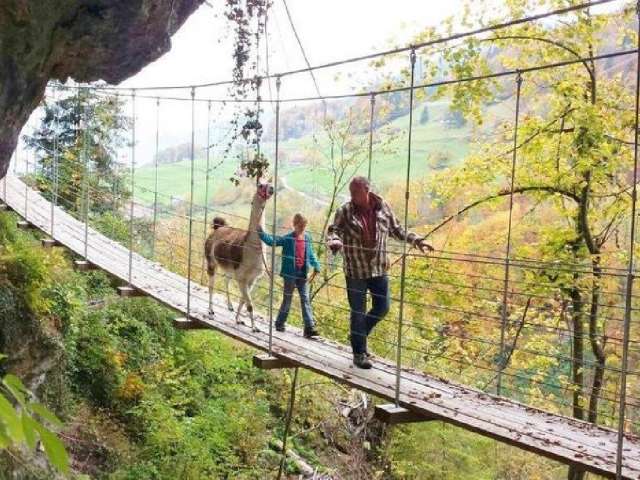 Lamas sind aufmerksam und intelligent. Ihr besonnenes und ruhiges Wesen macht sie auch für Kinder zum idealen Begleiter. Das gemütliche Tempo der Tiere und ihre Neugier veranlassen uns, die Umgebung auf eine andere Art wahrzunehmen. Wir starten die Touren auf unserem Hof. Dieser befindet sich im östlichsten Zipfel des Glarnerlands, hoch über dem Walensee. Schnuppertour Auf dem alten Römerweg wandern wir auf abwechslungsreichen Wegen nach Walenguflen. Über die Hängebrücke und durch das Felsentunnel in den Fuchsfallen geht es wieder zurück. Dauer: 1.5 bis 2 Stunden. Brätlitour Wir wandern über Walenguflen nach Obstalden. Danach geht es hoch über dem See weiter Richtung Filzbach. Im Rüteggwald bräteln wir eine Wurst oder kochen auf dem Feuer ein Fondue. Auf dem Rückweg geniessen wir die schöne Aussicht auf den Walensee. Dauer: ca. 6 Std, Wanderzeit 3 Std. Beizlitour Über den Römerweg wandern wir nach Filzbach ins Restaurant Panorama Lihn. An herrlicher Aussichtslage über dem Walensee lassen wir uns dort verwöhnen. Zurück geht es über den Gugger ins Mittlisor. Bei Walenguflen wandern wir über die Fuchsfallen mit ihrer Hängebrücke wieder zurück zum Hof. Dauer: ca. 6 Std., Wanderzeit 4 Std.