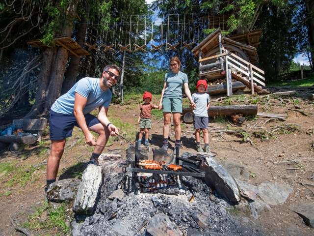 Die Stationen Rindenhüttli, Zwergenturm und Musiktruhe sind mit dem Kinderwagen erreichbar.